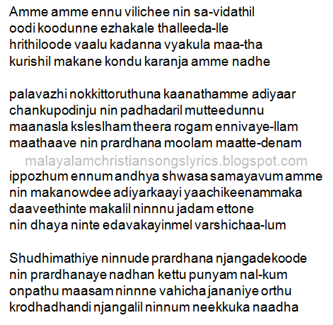 Amme Ente Amme Lyrics In Manglish : 24.09.2019 · amme, ente amme, ente eeshoyude amme amme, ente amme, ennikkeesho thannoramme. Amme Ente Amme Lyrics In Manglish / Nanma nerun amma with english lyrics.