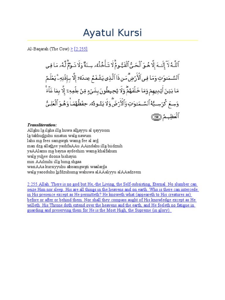 Ayat Ul Kursi Transliteration : Therefore, ayat al kursi is the greatest verse of the qur'an. Ayat Ul Kursi Transliteration : Quran translation for ayat al kursi: