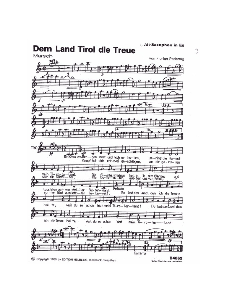 Download Dem Land Tirol Die Treue Pdf Jaakartur - Volkslied mit text und kostenlosen noten zum ausdrucken, sowie melodie (midi und video).