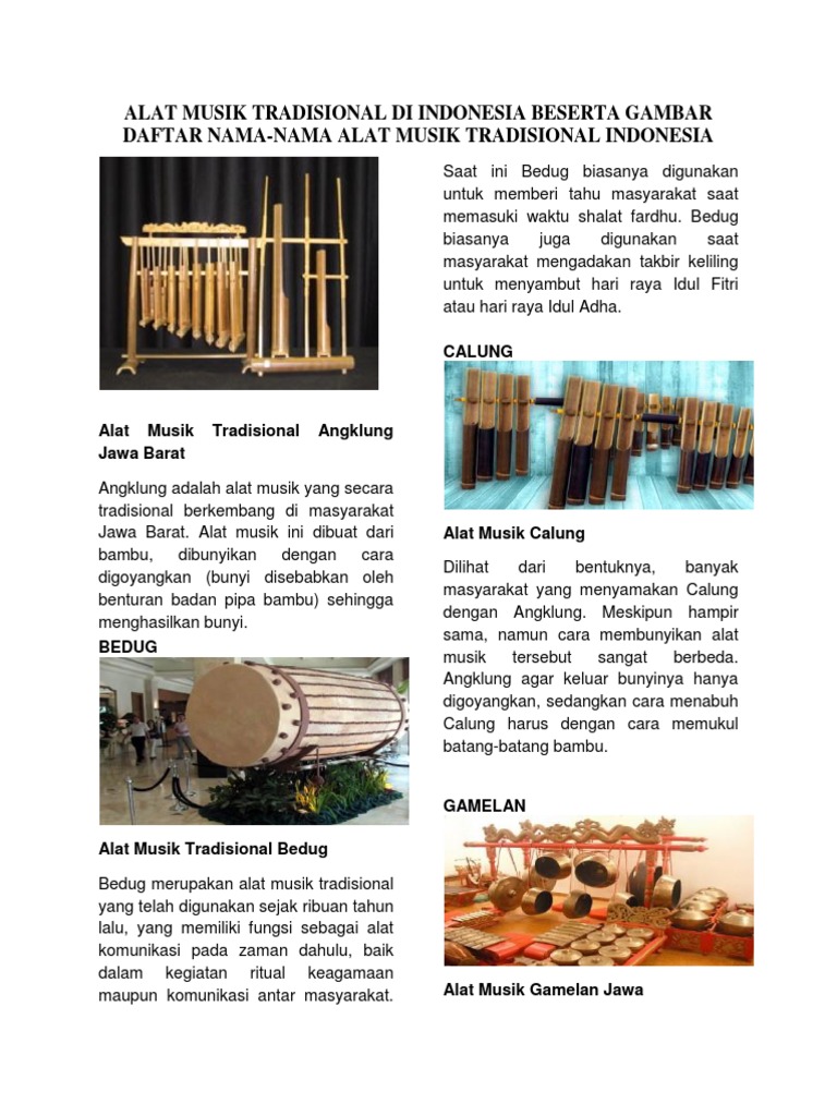 Doc Alat Musik Tradisional 34 Provinsi Indonesia Dan Gambar Bidenk Erz Academia Edu - Topeng tradisional indonesia beserta karakteristiknya.