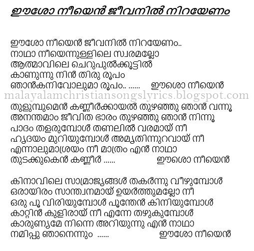 Eeshoye Eeshoye Lyrics : View songs from the album vannalum eeshoye in malayalam and manglish, along with their music tracks and karaoke | madely christian lyrics.