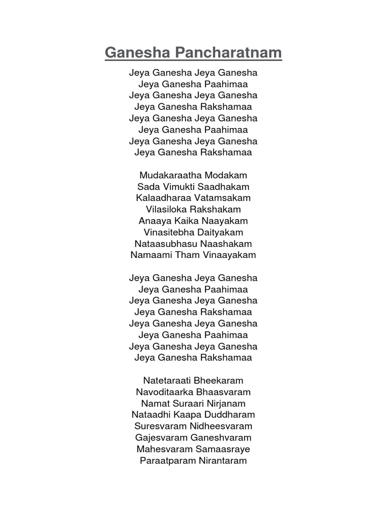 Ganesh Pancharatnam Lyrics - Stothrams and slokas in tamil. Ganesh Pancharatnam Lyrics / Ganesha pancharatnam is also known as ganesha pancharathnam stotram.
