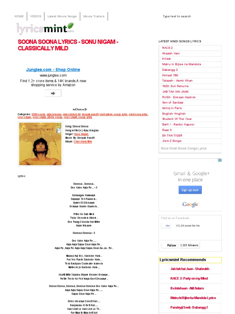 Soona Soona Lyrics Sonu Nigam Classically Mild Bollywood Cinema Of India - Okay so i saw this movie, and i just fell in love.