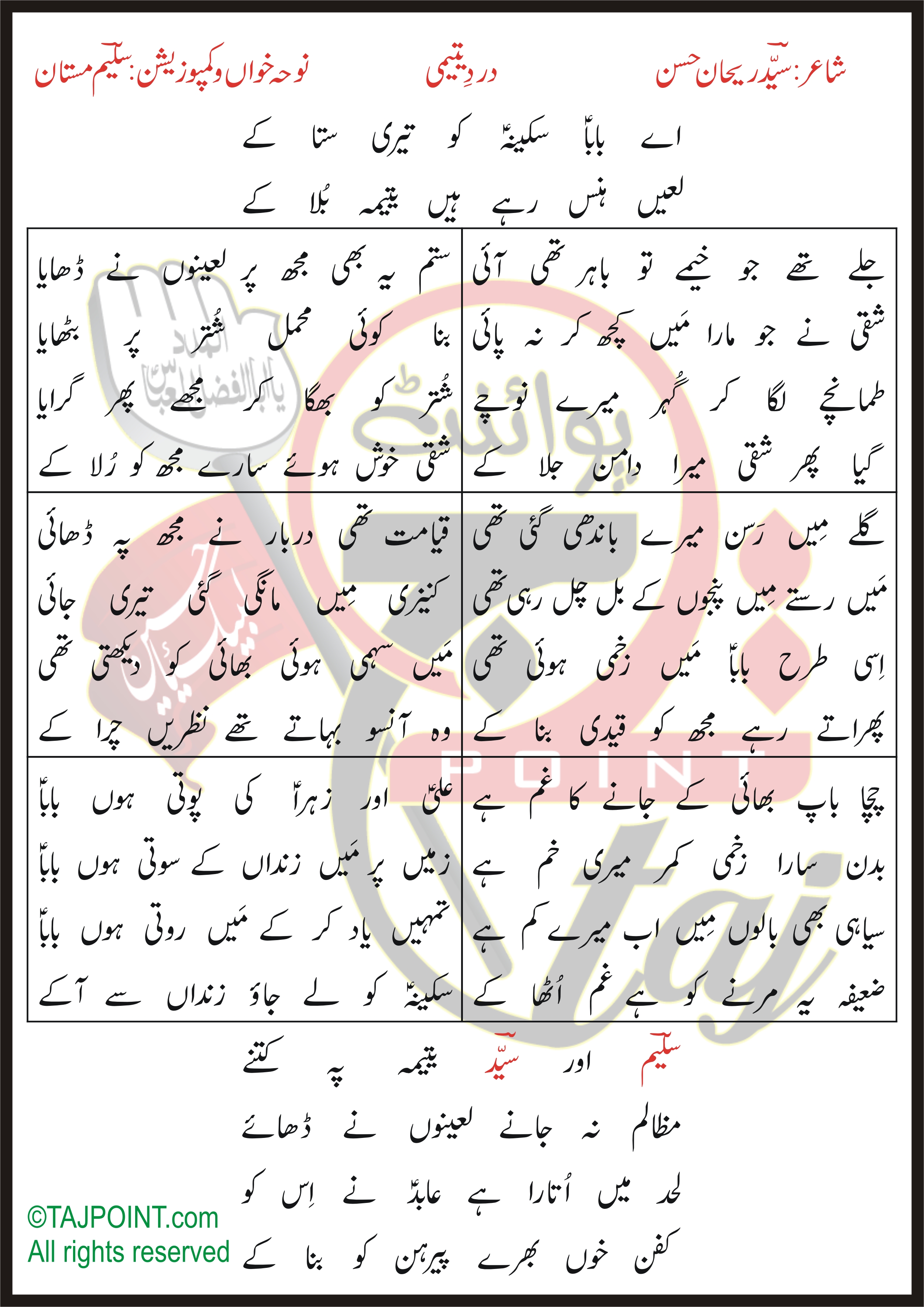 Dard E Yateemi Lyrics In Urdu And Roman Urdu - Manqabat e taaj ush shariyath view lyrics.